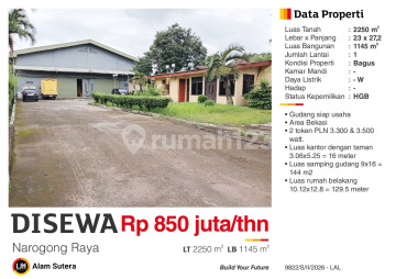 Gudang di Narogong, Bekasi. For rent di wilayah yang asri. Dengan kategorinya adalah sebagai berikut: - Kamar Mandi: 4 - Sertifikat: HGB - Hak Guna Bangunan - Kondisi Perabotan: Semi Furnished Dan properti ini juga pilihan tepat karena: - Siap Huni. - Bebas Banjir. - Dipinggiran kota. - City View. - Lokasi Strategis. - Properti Bisa Nego. Lokasi gudang ini mudah dijangkau, hanya selangkah menuju berbagai fasilitas utama dan menarik. Hanya Rp. 70.833.333, anda bisa langsung dapatkan gudang eksklusif di daerah Narogong ini. Tersedia juga untuk rental period Yearly.