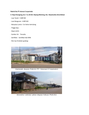 Harga Paket: Rp 100 Miliar (2 Lokasi Sekaligus) 1. Pabrik Eks PT Interact Corpindo