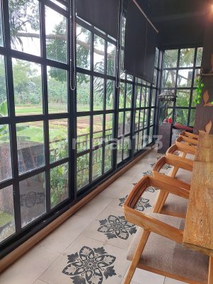 Jual Resto dan Cafe View Sawah masih berjalan berikut peralatan dan operasionalnya di pinggir jalan Raya Cibarusah Cikarang Spesifikasi : SHM LT 1742m2 LB 943m2 Listrik 23.000 watt Hadap Timur Air Tanah Kapasitas 300 orang Ada Ruang Office Ada Mess Karyawan Kitchen berikut perlengkapannya -HA-