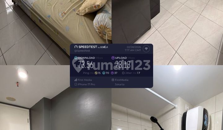 Tower Basella Lantai 27 Luas Bangunan 21m2 Kamar Tidur 1 (type Studio) Full furnished (AC 1unit) Listrik 1300Watt View Binus Harga Sewa 25Jt pertahun nego Deposit 3Jt #heny/GPHI