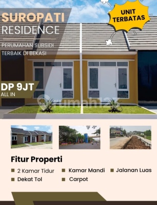Dijual rumah bersubsidi di tambun utara Spek Pondasi batu kali Dinding batako plester aci Genteng beton Lantai keramik Atap rangka baja ringan Listrik 1300 W Air sumur pantek 8 m Harga&Type 22/60 KT 2 KM 1 Rp.18500xxxxall in 9 jt termasuk booking fee ) Bisa cash keras dan KPR 5 menit ke toll jorr2 cibitung cilincing 20 menit ke summarecon bekasi, kota harapan indah, stasiun bekasi Minat dan info details hub Zoel F 08224999xxxx