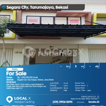 Siap Pakai, Cocok Untuk Usaha, Lokasi Strategis Di Pinggir Jalan Raya, Akses Jalan Dan Parkir Sangat Luas, Dekat Akses Jalan Tol For Sale - Jual Ruko Segara City Tarumajaya, Bekasi, Jawa Barat Harga. Rp 1,295,000,000 (Jual) Deskripsi Properti. Siap Pakai, Cocok Untuk Usaha, Lokasi Strategis Di Pinggir Jalan Raya, Akses Jalan Dan Parkir Sangat Luas, Dekat Akses Jalan Tol Luas Tanah. 51 m2 Dimensi. 4.5x11 Luas Bangunan. 65 m2 Sertipikat. HGB Kamar Tidur. - Kamar Mandi. 2 Garasi Mobil. - Hadap / View. Utara LOCAL X Kelapa Gading ******** ⓪②① ②⑨⓪⑥ ⑧⑤⑨⑤ P3KPG-0000xxxx-ZZ-J