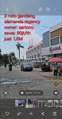 *SPESIFIKASI PROPERTI – RUKO GANDENG 2 UNIT BISA DIJUAL / DISEWAKAN* Lokasi: Alamanda Regency strategis pinggir jalan raya utama perumahan, ramai dikunjungi dan samping Wisata Bermain Rainbow cocok Kuliner, showroom motor, toko Furniture, dll sebelah ruko sudah ada kuliner, showroom dll Luas Tanah: 120 m² (2 unit ruko) Luas Bangunan: 155 m² Jumlah Lantai: 2 lantai Letak: Badan (bukan hook/pelosok) Arah Hadap: Barat (hoki) Kondisi Bangunan: Baru Fasilitas: Kamar Mandi: 4 Garasi / Parkiran: Parkir di depan ruko Toren Air: 4 unit Listrik: 2.200 watt/ unit Air: PAM Pompa Air: 2 unit Legalitas: Status Kepemilikan: SHM (Sertifikat Hak Milik) Harga Sewa: -dari 90 juta turun harga jadi Rp 80 juta/ tahun ( gandeng) -@40 juta/ tahun ( satuan) Harga jual: 1,7M/ 2 ruko hub: Sarah Grace Commercial Properties Jabotabek 08131597xxxx