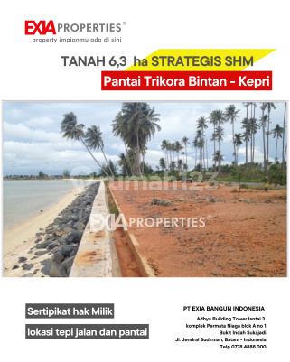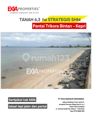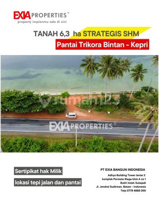 Dijual Tanah 6.3 ha tepi pantai eksklusif SHM pantai Trikora Bintan cocok untuk bangun resort di pantai Trikora,tanjung pinang(pulau bintan) Lokasi strategis dan pantai perawan, bersih, lautnya juga bening. tanah nya rata dan matang pemandangan luar biasa Luas Tanah : 6.3 ha Harga hanya 550 ribu/ m2 sertipikat Hak milik ( ada 5 bidang surat ) ayo survey dan hubungi segera EXIAproperties®