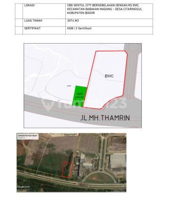 FOR SALE Lahan Commercial lokasi prime (sebelah EMC Hospital Sentul) Luas Tanah: 3,074 m2 Bisa bangun 8 Lantai Zoning: Commercial Market price Rp 25 jt / m2 Asking price: Rp 22 jt / m2 (nego) More Info: Dennis Zi Hao 087887646xxx 081238627xxx GoodLand Property Green Lake City