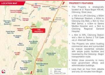 Lokasi lahan sanga strategis terletak di Jl. Raya Bogor KM 46, Cibinong Bogor Jabar. * 100 meter ke LIPI Cibinong, 800m2 ke Pakansari Stadium, 900m2 ke Cibinong City Mall, 4 km ke Vivo Mall Sentul, 4.5 km ke Sentra Medika Rumah Sakit, dan 5 km ke RSUD Cibinong * 4 km to KRL Stasiun Cibinong dan 6 km ke toll gate Sentul 2 melalui jl. Alternatif Sentul * Lahan berada di antara kawasan komersial dan kompleks Perumahan ternama di Bogor di lengkapi dengan fasilitas umum yang lengkap di area Cibinong Bogor termasuk transportasi umum. * Mudah dan dekat dengan beberapa kantor Pemerintahan Bogor yang berada di dalam satu kompleks * Kurang dari satu jam sudah bisa tiba di Jakarta, dengan waktu 25 menit dari Bogor
