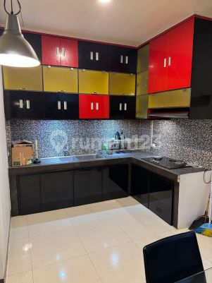 DISEWAKAN Rumah 2 Lantai Semi Furnished di Legenda Wisata Spesifikasi : - LT. 128 m2 , - LB : 204 m2 - KT 5 (semua ada AC nya)+1 -KM 4+1 -AC 7 unit -Air : PDAM dan Sumur bor - Toren air kapasitas > 1000 ltr - Listrik : Token 5500 Watt - Carport lebar 5 m, bisa 2 mobil kecil - Ruang tamu lt.1 dan lt.2 ber AC - Water heater kamar mandi dan dapur - Posisi rumah hadap barat - Semi furnished *Lantai 1:* -R. Tamu -R. Keluarga -Dapur ada kitchen set, kompor gas tanam+ tabung, meja makan 4 kursi -KT utama + dg kamar mandi dalam, lemari pakaian, tempat tidur uk. 200x160 cm -1 Kamar mandi tamu *Lantai 2:* -4 Km Tidur ( 2 KT ada tempat tidurnya, 3 KT lengkap lemari pakaian) -2 Kamar mandi luar -R. Keluarga -Balkon *Lantai 3:* -1 gudang ( untuk pemilik) -1 KT ART -1 Kamar mandi ART -Area jemur - Harga sewa/ Net : 8000xxxxnego) - Deposit : 5.000.000 , - IPL : kl. 310.000,-