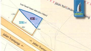 Investasikan masa depan Anda dengan memiliki tanah di Jalan Transyogi, Alternatif Cibubur Gunung Putri Bogor. Lokasi strategis, pengembangan tinggi, dan harga yang menarik. Jangan lewatkan kesempatan ini. #dinarafiproperty 0856xxxxxxxx. Spesifikasi: • Luas Tanah 730 m2 (30 x 24,3) • SHM (2 Sertifikat) • Nilai Appraisal Rp11,3 Milyar • Harga 9,75 M (Nego Tipis) Akses Terdekat : • Pintu Tol Cimanggis-Cibitung (Gerbang Tol Jati Karya) Cocok untuk : • Bengkel, Ruko Alfa Mart/ Indomart, Resto dll