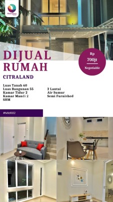 Rekomendasi properti dengan penawaran terbaikRumah123 adalah situs teknologi jual beli dan sewa properti terdepan di Indonesia, yang hadir sejak tahun 2007 dan telah melayani jutaan orang di Indonesia. Rumah123 senantiasa berkomitmen untuk membuat pengalaman 'Jual Beli dan Sewa Properti Lebih Mudah' dengan dukungan dari developer terkemuka serta agen profesional.