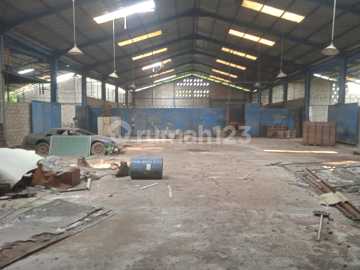 Tanah luas 1ha dengan bangunan seluas 3600m. Masuk kontainer 20ft,40 ft. Pinggir jalan raya. Dapat diakses tol Narogong, tol Jatikarya, Cibubur.