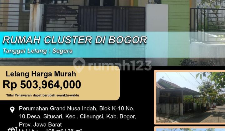 Rumah 1 lantai di Cileungsi, Bogor. Dijual rumah di wilayah yang nyaman. Properti 1 lantai ini berada di lingkungan strategis. Spesifikasinya adalah sebagai berikut: - Kamar Tidur: 2 - Kamar Mandi: 1 - Sertifikat: SHM - Sertifikat Hak Milik - Hadap: Utara - Kondisi Perabotan: Unfurnished Tidak hanya itu, properti ini layak untuk dimiliki karena: - Dekat Landmark. - Dekat Akses Tol. - Dekat Pusat Perbelanjaan. - Aset Lelang. Properti ini sudah lengkap dengan fasilitas: - Akses Parkir. - Keamanan 24 jam. - Tempat Jemuran. Lokasi rumah ini dekat fasilitas umum, hanya selangkah menuju berbagai fasilitas utama dan menarik. Dengan Rp. 503.960.xxx, anda dapat langsung dapatkan rumah terbaik di daerah Cileungsi ini.