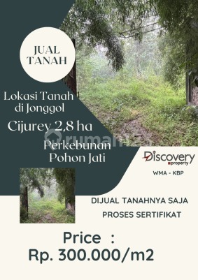 Tanah Cijurey daerah Jonggol, Jawa Barat. Terletak persis di atas lembah, bekas tanah peternakan ayam dan Kebun Jati Emas. Cocok untuk perkebunan dan pertanian. Dijual juga .. Tanah di Gunung Batu, Jonggol Jawa Barat. Luas Tanah : 3.852 m2 Harga : Rp. 200.000 /m2 Tanah di Suka Makmur, Jonggol Jawa Barat Luas Tanah : 4.500 m2 Harga : Rp. 100.000 /m2 Surat berupa hak garap desa/ girik.
