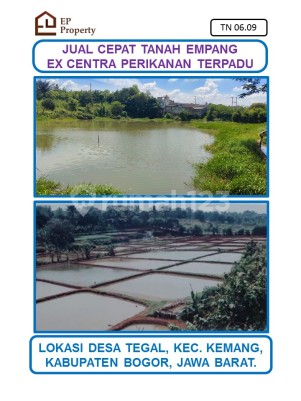 Jual Cepat Harga Spesial. Tanah Empang Ex Centra Perikanan Terpadu. Luas Tanah : 7315 m2. Jual Cepat Dibawah Pasaran. Legalitas Surat SHM. Lokasi : Jl Raya Parung Bogor, Desa Tegal, Kec. Kemang, Kab. Bogor, Jawa Barat. Benefit : - Dimensi Lebar Muka 29,2 m & Panjang Kebelakang 25 m. - Kondisi Jalan Aspal Sampai Lokasi. - Area Berkembang : Pom Bensin, Pesantren, Komplek Perumahan dan Sekolah Tinggi. - Area Tambak Masih Bisa Diaktifkan dan Dikembangkan. Saat Empang Aktif : - Terdapat 26 Kolam Tambak. - Untung Bersih Bisa Sekitar Rp. 4 Milyar/tahun. - Panen Ikan Lele & Gurame 35 - 40 ton/bulan atau 400 - 450 ton/tahun. Lokasi strategis. - Jarak 1,2 Km dari Jalan Raya Bogor. - Dekat Pendopo 45 Resort. - Harga Pasaran Tanah Sekitar Rp. 1 Juta - Rp. 1,35 jt/meter. - Jual Cepat dan Murah Dibawah Pasaran. Harga Rp 5,7 Milyar Nego. Peminat serius langsung buat jadwal ke lokasi. Fast respond via chat/telp WA 0882xxxxxxxx