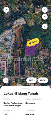 TANAH DIJUAL Lokasi : jl raya parung-bogor( jampang) Lokas pinggir jalan Lebar muka tanah pinggir jalan kurang lebih 70-100 m Luas : 8 hektar Surat : surat SHM ( 4 sertifikat) milik sendiri Terdapat akses jalan masuk tanah ( cor) Lebar jalan 3 meter Harga NJOP ; 2,8 jt Harga : 2 jt / meter Note : *boleh untuk pembelian tanah 4 hektar *