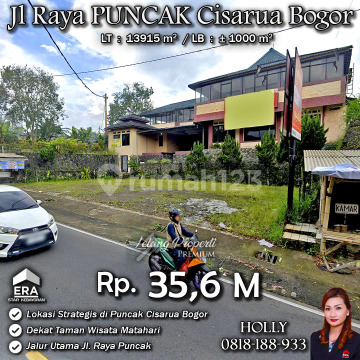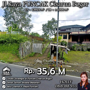INFO UPDATE LISTING TANAH LUAS LOKASI STRATEGIS DAN PREMIUM JL RAYA PUNCAK CISARUA BOGOR Alamat: Jl. Raya Puncak KM 77 Kp. Sukamulya Kel. Kopo Kec. Cisarua Kab. Bogor Jawa Barat Detail Properti: - Luas Tanah : 13915 m² Keunggulan Lokasi: - Lokasi Strategis dan Premium Harga: Rp. 35,6 M (CASH ONLY) Harga BELUM Termasuk biaya Pengosongan dan Balik Nama. (Harga di atas belum termasuk BPHTB 5%, biaya lelang 2%, Pajak Pemerintah 1%, dan PBB jika ada) **Kenapa Memilih Kami?** Dengan pengalaman 12 tahun di bidang lelang, kami menyediakan solusi satu atap untuk semua proses transaksi. Kami akan membantu anda mulai dari proses balik nama, penguasaan aset sampai proses serah terima kunci dengan aman, nyaman dan bebas ribet. Hubungi Kami untuk Info Lebih Lanjut: - Holly: 081818xxxx - Ferry: 0816116xxxxLelangProperti #PropertiIndonesia #InvestasiProperti #PropertyInvestment #RumahDijual #AgentProperti #JakartaRealEstate #JualBeliProperti #EraIndonesia #AgenPropertiTerpercaya #Investasi #RealEstateAuction #TanahdijualBogor #Tanahdijual #RumahAsri #Rumahmewah #Rumahmodern #Rumahminimalis #Kertamaya #Kopo #Cisarua #Bogor #Puncak #Jawabarat