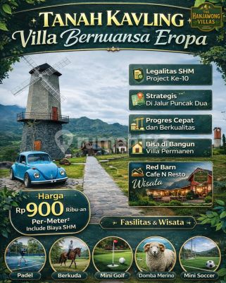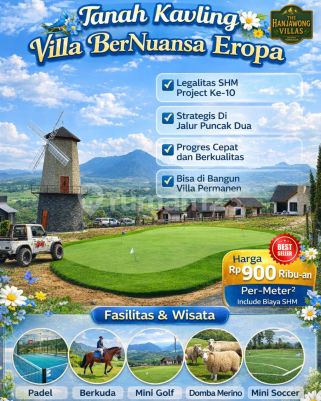 Tanah Kavling Murah SHM Zona Kuning Bisa Bangun Nuansa EROPA Terjangkau Jabodetabek Hanya 90 Menit dari Exit TOL Nagrak dan Jatikarya Cibubur Amankan Uang Anda ke Aset Real di Kavling THE HANJAWONG VILLAS Tanah Kavling SHM Zona Kuning Bisa bangun di Bogor Timur yang indah, hanya 90 menit dari Jabodetabek dekat Jakarta, Bogor, Depok Tangerang, Bekasi, Sentul City, Cibinong, Citeureup dan Cileungsi. Suasana asri hijau alami, udara sejuk dan segar di ketinggian 500 MDPL dengan pepohonan rimbun. Bayangkan setiap pagi Anda disambut udara sejuk di ketinggian 500 Mdpl dengan view pegunungan hijau Hanjawong yang membentang di depan mata. Tempat dimana ketenangan alam bertemu dengan kemewahan desain kawasan yang terencana indah. Tempat dimana bisa duduk santai di teras, menyeruput kopi hangat, ditemani semilir angin dan kabut tipis di antara pepohonan pinus. KEUNGGULAN Lokasi & Lingkungan : ●Akses strategis dari Jakarta, Bogor, Bekasi, Depok, Tangerang Sentul Cibubur. ●Ketinggian 500 MDPL - udara sejuk segar, bebas polusi, nyaman untuk keluarga. ●Panorama pegunungan & resort mewah di sekitar kawasan Puncak 2 Bogor. ●Dikelilingi Villa-Villa Eksklusif, menjadikan nilai investasi terus meningkat. ●Dekat Wisata Viral diantaranya Wisata Villa Khayangan, Wisata Curug Cipamingkis, Nirvana Valley, Wisata Setu Rawagede, Wisata Gunung Batu dll. FASILITAS Infrastruktur Premium untuk Hidup Berkualitas : ●Jalan lebar cor beton yang nyaman dan kokoh, akses masuk mobil sampai ke area kavlingnya. ●Lapangan Mini GOLF untuk menikmati akhir pekan elegan. ●Mini ZOO bagi keluarga dan anak-anak. ●Menara Kincir Angin & Menara Jam London sebagai ikon spot foto bernuansa Eropa. ●Lapangan Mini SOCCER untuk aktivitas rekreasi bersama. ●Lapangan PADEL untuk aktivitas Trend dan sosialita Anda. ●Legalitas SHM (Sertifikat Hak Milik) - aman, bersih, dan jelas. ●Internet Terjangkau Telkomsel, XL, Indosat dan layanan broadband seperti Indihome Harga Terjangkau mulai 58Juta/100m² sudah termasuk biaya urus surat surat SHM + Bonus Menarik Rumput gajah mini, pohon Pule/Cemara/Pinus, serta perawatan lahan gratis selama 2 tahun. Legalitas Aman Clean & Clear Dengan Sertifikat Hak Milik (SHM).