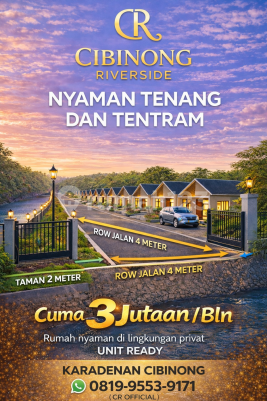 Tunda Beli Rumah Anda, Sebelum Survey Cibinong Riverside ✨ Hunian Tenang di Tepi Sungai Cocok untuk Hunian Utama & Second Home Pulang ke rumah yang tenang itu kebutuhan, bukan sekadar keinginan. Cibinong Riverside menghadirkan hunian privat dengan suasana alam yang nyaman, jauh dari hiruk pikuk kota namun tetap mudah dijangkau. Ideal untuk tempat tinggal harian, dan sempurna sebagai second home untuk beristirahat di akhir pekan. HIGHLIGHT UTAMA v️ Unit Ready v️ Lingkungan tenang & asri v️ Row jalan 4 meter v️ Taman 2 meter v️ Talud 3 meter (arah sungai) v️ Cocok untuk hunian & second home PROMO v️ DP Suka-suka v️ FREE Semua Biaya v️ Cicilan mulai 3 jutaan v️ Bonus AC & WiFi 1 Tahun v️ Bonus Tambahan: Pohon Durian LOKASI Karadenan - Cibinong Survey Lokasi Sekarang 0819xxxxxxxx