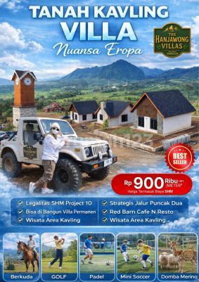 The Hanjawong Villas adalah Kawasan Kavling Villa bernuansa Eropa di Puncak 2, Sukamakmur Bogor, yang menawarkan udara sejuk di ketinggian 500 mdpl dengan pemandangan pegunungan Hanjawong dan Fasilitas premium sepertI Mini GOLF, Mini ZOO, PADEL dan Mini SOCCER. Proyek ini berlokasi strategis di Jalur Utama Puncak 2, mudah diakses dari Jakarta dan sekitarnya, serta memiliki potensi investasi tinggi karena dikelilingi wisata populer dan terus berkembang. Berada di wilayah Sukamakmur yang akan menjadi Calon Ibu Kota Bogor Timur, sehingga akan menjadi Aset Properti yang menguntungkan kedepannya. Fasilitas dan Keunggulan : - Desain EROPA: Menghadirkan suasana Vibes Eropa dengan ikon seperti Menara Kincir Angin, Villa Eropa, Resto ala Barn dan Menara Jam London. - Fasilitas Premium: Dilengkapi dengan jalan lebar Cor Beton, Mini GOLF, Mini ZOO, PADEL dan Mini SOCCER. - Legalitas Jelas: Memiliki Sertifikat Hak Milik (SHM). - Lokasi Strategis: Terletak di Jalur Utama Puncak 2 Bogor, terjangkau dari Jakarta sekitar 90 menit dari Exit Tol Cibubur dan Nagrak. - Zona Kuning: Zona Permukiman Bisa Dibangun Permanen. - Potensi Investasi: Harga Terjangkau utk sekelas Kavling Eropa dengan potensi capital gain tinggi karena berada di kawasan wisata yang terus berkembang, dan terutama berada di wilayah yang akan menjadi calon ibu kota Bogor Timur. Cocok buat Hunian masa Pensiun Anda. PROMO AWAL TAHUN ! JANUARI BERLIMPAH PROMO DISKON hingga 10 juta rupiah + Free Biaya AJB & Balik Nama Harga mulai 88jt DISKON TURUN Jadi *78 JUTA/100 M2* BONUS : + Rumput Jepang dan Bibit Pohon Pinus atau Pohon Buah + Free Perawatan Lahan Selama 2 Tahun + Harga sudah termasuk biaya surat BPHTB, AJB, Notaris, Biaya Balik Nama SHM (Note : s&k sesuai dengan ketersediaan stock) UNIT TERBATAS ! JANGAN LEWATKAN KESEMPATAN LANGKA PUNYA ASET BERHARGA TANAH KAVLING NUANSA EROPA VIEW INDAH GUNUNG HANJAWONG ! Hubungi Marketing Resmi Kami. Ferry Irawan The Hanjawong Villas Mahabbah Property Indonesia