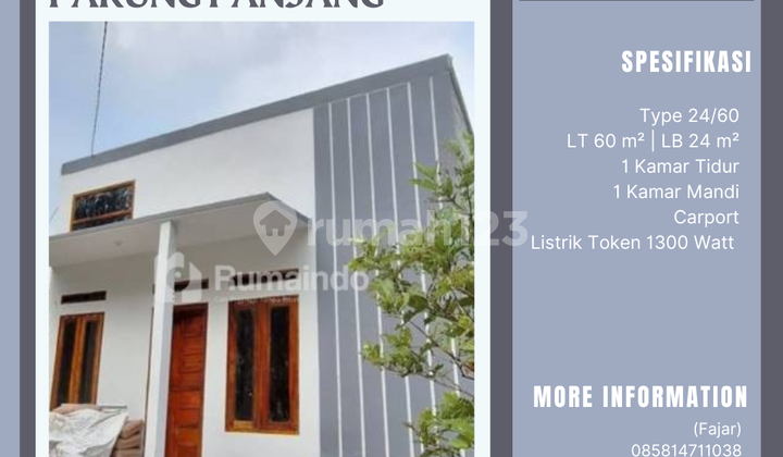 Rumah 100 jutaan Dekat Stasiun Cilejit, Parung Panjang Mulai 110 Juta Aja, Punya Rumah Sendiri Jadi Nyata! Pilihan tepat untuk hunian pertama atau investasi terjangkau Type 24/60 LT 60 m² | LB 24 m² 1 Kamar Tidur 1 Kamar Mandi (Closet jongkok) Carport Wastafel + Air Sumur Bor Satelit Listrik Token 1300 Watt Lokasi tenang & strategis, cocok untuk keluarga kecil Harga cash hanya Rp 110.000.xxx Segera booking sebelum unit habis! Hubungi WA: 0858xxxxxxxxFajar0821xxxxxxxx