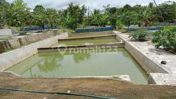 Luas Tanah : 5.800 m ( 5.500 sdh sertifikat, 300 proses sertifikat. ) Kolam: ( beton) -Induk : 3 bh, ukuran 6x3 -Pijah: 2 bh ukuran 4x2 -Deder: 50 bh ukuran 3x4 ( beton - terpal) -Pembesran:6 bh,10x8 2 bh, 25x10 SAUNG 2 Bh saung , lengkap air, kamar mandi, tempat kumpul2. (1 buat owner, 1 buat karyawan. ) Sumur air 4 bh 2 Jetpam, untuk saung, 2 Satlit untuk kolam. Selain itu, ada air mengalir dari gunung. 1bh kandang ayam, muat ratusan ayam. Induk, penetasan, anak ayam, remaja dan pembesaran 1 bh kandang kambing, muat untuk 18 ekor Berbagai pohon buah: Mangga, jambu, kelapa, sirsak, nangka, belimbing , sauh, pepaya, pisang dsb , sekitar 25 pohon. Rata2 sudah berbuah. Pagar keliling SPANDEK Full, Pintu Besi. ALE
