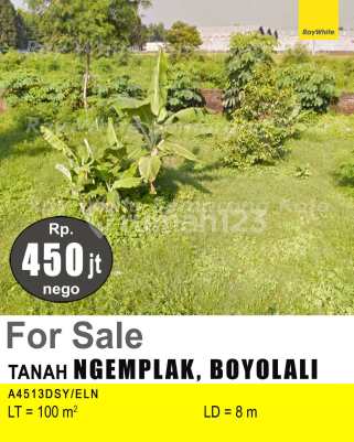 Tanah di Ngemplak. Miliki tanah yang modern ini, dijual menawarkan lingkungan fasilitas yang lengkap, cocok untuk Anda yang menginginkan hunian aman. Spesifikasi Utama Properti: - Sertifikat: SHM - Sertifikat Hak Milik Fitur unggulan: - Siap Huni. - Bebas Banjir. - Sejuk. - Cocok Untuk Investasi. - Properti Bisa Nego. - Lokasi Strategis. Terletak di Ngemplak, tanah ini memberikan kemudahan akses ke berbagai fasilitas menarik. Dengan harga Rp. 450.000.xxx, anda bisa memiliki hunian eksklusif yang sudah siap huni dan bersertifikat SHM - Sertifikat Hak Milik. Jangan lewatkan kesempatan untuk menikmati investasi di kawasan Ngemplak yang nyaman ini! Kontak segera untuk informasi lebih lanjut!