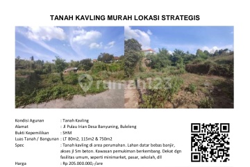 Tanah Kavling Murah Lokasi Strategis Di Jl. Pulau Irian Desa Banyuning, Buleleng Bali Spesifikasi : Ada 3 Kavling Luas Tanah : 80, 115 & 750 Meter SHM Akses Jalan 5 Meter Beton Dekat Pasar, Sekolah, Minimarket Harga 205Juta / Are Nego