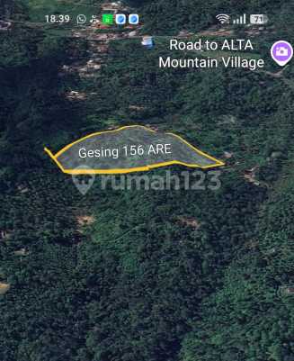 ******** Dijual tanah luas 1,56 Hektar(156 ARE) di Gesing dekat Munduk Haven Resort Posisi tanah tinggi menghadap lembah, Laut dan Sunset . belakang view gunung Shangyang dan gunung Batukaru Tanahnya berisi pohon cengkeh tua, jalan, listrik dan air sudah di lokasi Harga 60 JT/ARE