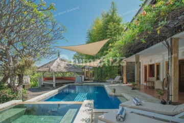 Nestled in a serene tropical setting, this exquisite villa features 3 generously sized bedrooms, each with its en-suite bathroom. The expansive open-plan design seamlessly combines the living area, dining space, and a fully equipped modern kitchen, creating a warm and inviting ambiance. Step outside into a lush backyard retreat, complete with a sparkling swimming pool, a separate jacuzzi, and a spacious terrace furnished with cozy sun loungers and a coffee table. A charming 15 m² gazebo, surrounded by vibrant frangipani trees, adds a touch of tranquility. The villa also includes a private bungalow housing the third bedroom, which boasts its covered terrace, an ideal spot to enjoy breakfast while soaking in views of the lush tropical valley. Convenience is unmatched, with direct access from the main road and private parking for two cars right at the front of the villa. What truly sets this property apart is the unparalleled privacy it offers. With no neighbors in sight and a backyard opening to a picturesque jungle, it feels like your own secluded paradise. Despite its peaceful atmosphere, the villa is perfectly situated just off the main road, providing easy access to the town center.