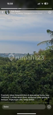 Tanah sewa Lovina Luas 145 are View laut Harga 45 JT per are SHM PBB Jalan mobil View hutan Dko pak bagus