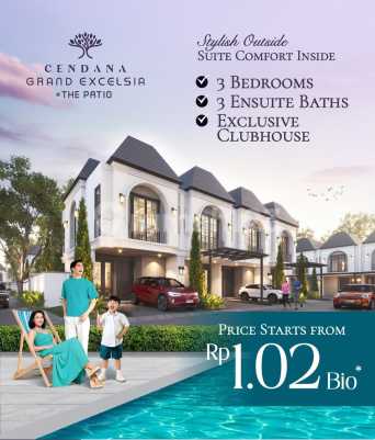 Cendana Grand Excelsia Rumah dengan cicilan 5 juta/bulan, upgrade hidup kamu. Rumah nyaman dengan 3 kamar tidur dan 3 kamar mandi dalam, Privasi aman, aktivitas harian auto makin nyaman. DP 16% cukup bayar 1 % - Free AJB BPHTB - Free AC 3 Unit - Free Biaya KPR 2.5% - Clubhouse ( kolam renang dalam Cluster ) #Harga mulai Rp 1.020 M # Booking Free 10 Jt info Abdul.M