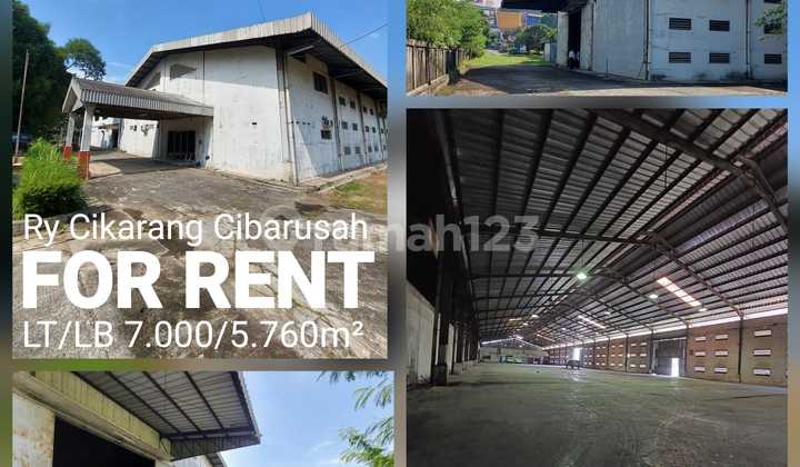 Sewa Gudang Pinggir Jalan Raya Cikarang Cibarusah Luas Tanah 7000m² Luas Bangunan 5.760m² Lebar 58 Panjang 96 Tinggi dinding samping 7m Listrik PLN 240 KVa Harga sewa 50.000/m²/bln Excld PPN Ada opsi untul sewa keseluruhan lahan di 1.5HA