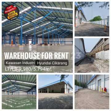 Disewakan Pabrik/Gudang Siap Pakai dan terawat di Kawasan Industri Hyundai Lippo Cikarang • Luas tanah : 9.980 m2 • Luas bangunan : 6.500 m2 • Kamar mandi : 4 • Uk. Gudang 26,5 x 30 (m) • Tinggi dinding samping 8 m • Lantai Epoxy • Hydrant Box 4 unit • Pintu Gudang ( Rolling Door) untuk loading dan unloading ada 4 unit Lokasi Strategis di Kawasan Industri Hyundai Lippo Cikarang Dekat dengan Gerbang Tol Cikarang Barat dan Cibatu Dekat dengan Kawasan Industri EJIP, Delta Silicon 1,2 dan 3 **Harga Sewa Rp 65 Rb/ m2/ Bulan excld PPN Minat Hubungi LJH Realty Cikarang (YULI)