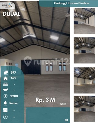 Gudang di Kejaksan, Cirebon. For sale di wilayah yang nyaman. Dengan kategorinya adalah sebagai berikut: - Kamar Mandi: 1 - Sertifikat: SHM - Sertifikat Hak Milik - Daya Listrik: 2200 W - Kondisi Perabotan: Unfurnished Dan properti ini juga terdepan karena: - Siap Huni. - Bebas Banjir. - Dekat Pusat Perbelanjaan. - Dekat Sekolah Negeri. - Dekat Fasilitas Kesehatan. - Dekat Tempat Ibadah. - Lokasi di Pusat Kota. - Lingkungan Tenang dan Damai. - Cocok Untuk Investasi. - Cocok Untuk Dijual Kembali. - Aset Kepemilikan Pribadi (Tangan Pertama). - Properti Bisa Nego. - Akses Jalan Muat 2 Mobil. - Lokasi Strategis. - Lokasi Bebas Banjir. - 5 menit ke balaikota - 7 menit polres cirebon Keberadaan gudang ini mudah dijangkau, hanya selangkah menuju berbagai fasilitas utama dan menarik. Dengan Rp. 3.000.000.xxx, anda dapat langsung dapatkan gudang istimewa di daerah Kejaksan ini. Jual harga Rp. 3.000.000.xxx,- nego Sewa/kontrak Rp. 180.000.xxx,-/th nego