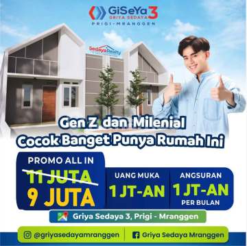 RUMAH SUBSIDI GISEYA MRANGGEN @Promo lokasi belakang Blok B all in 7 JT KTP Demak Blok B all in 11 JT KTP Semarang Tipe 28/60 Lokasi Giseya 3 Prigi Mranggen Bebas banjir Lebar Main Gate 14 m 2 menit dari Indomaret, pasar tradisional dan sekolah 1 menit dari kantor pemerintah Playground Drainase terpadu tertutup Dinding sendiri tiap rumah Kualitas bangun terjamin 2 Kamar tidur 1 Kamar mandi Free 1 Dapur Free Taman & Carport Info surve hubungi