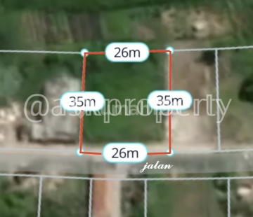 @ Luas Tanah: 920 m2 / 9.2 are @ SHM @ Lebar Tanah: 26 meter @ Hadap Selatan @ Lebar Jalan: 8 meter @ Tata Ruang: Zona Perumahan @ Harga: Rp. 830 Juta/100m2/are - NEGO