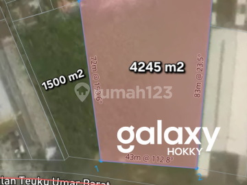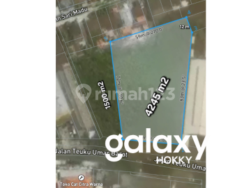 DIJUAL TANAH KOMERSIL STRATEGIS RAYA TEUKU UMAR BARAT DENPASAR - BALI Rp. 2 MILIYAR perARE / Rp. 20 JUTA perMETER OPSI HARGA Rp. 114, 9 MILIYAR , GLOBAL SHM LT : 4.245 M² + 1.500 M² = 5.745 M² GLOBAL HADAP SELATAN AKSES JALAM 20 METER