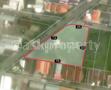 @ Luas Tanah: 2575 m2 / 25.75 are @ SHM @ Posisi Tanah Pojok (Hook) @ Lebar Jalan: 12m & 6m @ Tata Ruang: Zona Perumahan @ Hadap Utara & Barat @ Harga: Rp. 1.8 Milyar/100m2/are - NEGO