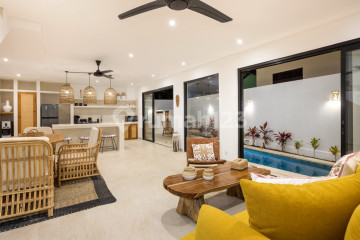 2 Bedrooms | 2 Bathrooms | Guest Toilet | Private Pool with No Overlooking This newly built, well-crafted 2-bedroom villa is located in a charming and upscale Balinese neighborhood in Seminyak, bordering Denpasar, close to Seminyak's center and its iconic beach. It offers a peaceful yet highly desirable living environment, suitable both as a private residence and as a rental investment. Built on 150 sqm of land with a 139 sqm building size, the villa features a minimalist design with subtle bohemian touches, focusing on comfort, functionality, and modern tropical living. The property comprises two well-proportioned bedrooms, each equipped with air conditioning, a flat-screen TV, and private ensuite bathrooms with toilets. A separate guest toilet on the ground floor adds everyday convenience and comfort when entertaining. The open-plan living, dining, and kitchen area is filled with natural light and opens directly onto a private swimming pool with no overlooking, ensuring privacy and tranquility. The seamless indoor-outdoor flow creates an inviting atmosphere for relaxation and entertaining. Offered at IDR 4,350,000,000, with a leasehold title valid until February 2048, this villa represents an excellent opportunity for both residential use and rental investment in one of Bali's most sought-after areas.