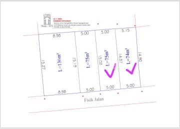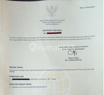 Harga 575 juta Rupiah ( 75 m2 ) lebar depan 5 meter Harga 1.050 Milyar Rupiah ( 136 m2 ) lebar depan 9,98 meter Dijual Tanah Kavling kavling perumahan di monang maning denpasar Bali - 3 menit dari Tiara monang maning - 4 menit dari Nirmala Hotel - 5 menit dari RS. Balimed, SMA Negeri 4, SMP Negeri 7 - 30 menit dari bandara ngurah rai Luas tanah 75 m2 dan 136 m2 ITR Kuning (kawasan perumahan) menghadap selatan panjang tanah 15 meter SHM Akses jalan 4,5 meter