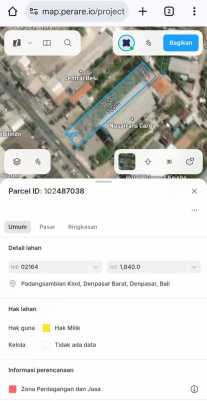 Lokasi premium, cocok investasi & pengembangan usaha! Dijual tanah strategis di Jalan Teuku Umar Barat, Denpasar Barat, berada di kawasan super padat penduduk, dikelilingi area komersial, pusat perekonomian, perkantoran, hingga rumah sakit. Lokasi ini merupakan salah satu koridor bisnis paling hidup di Denpasar-nilai properti terus meningkat setiap tahun! Tanah ini sangat ideal untuk: Ruko / Pertokoan Guest house / Kost eksklusif Mini market / Showroom Kantor / Klinik / Usaha komersial lainnya Pengembangan kompleks bisnis Spesifikasi Utama Luas tanah: 1.840 m² Dimensi: ±19 m x 100 m Posisi menghadap: Timur Laut & Barat Daya Akses luar biasa: Akses jalan utama 30 meter Akses belakang 8 meter Cocok banget untuk mobilitas usaha & loading barang Legalitas: Surat Hak Milik (SHM) - aman & siap proses ITR: Zona Perdagangan & Jasa - bisa bangun berbagai jenis usaha komersial Kontur tanah datar - siap digarap tanpa biaya tambahan KEUNGGULAN LOKASI Di jalur utama Teuku Umar Barat - salah satu kawasan bisnis tersibuk di Denpasar Dekat Rumah Sakit besar & area komersial Lingkungan ramai, aman, dan sangat potensial untuk bisnis Akses dua arah sangat jarang ditemukan di area premium seperti ini Cocok untuk investasi jangka panjang maupun pembangunan segera Harga Menarik Rp 9.000.000/m² atau Rp 900.000.xxx/are (Nett) Harga yang sangat bersaing mengingat lokasi premium dan zona usaha! Lokasi Google Maps: silakan cek titik lokasi melalui tautan berikut: ******** Tanah peluang emas seperti ini tidak sering muncul! Segera amankan sebelum diambil investor lain! Hubungi sekarang untuk survei & informasi lebih lanjut. ✨