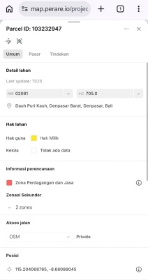 Dijual Tanah Di Pusat Kota Denpasar Barat Lokasi Teuku Umar Jalan Pulau Adi Luas 705m² (lebar 23m X 30m) Posisi Hook Akses jalan 8 meter (Pulau Adi) dan 6 meter (Pulau Ayu III) Hadap Timur dan Selatan Zona Perdagangan dan Jasa Harga Rp. 1,5 Miliar per are Ada bangunan lama *Lokasi: - City Centre - 80 meter ke Teuku Umar - Akses ke banyak jalan Pulau Ayu, Pulau Batanta, Pulau Kawe, dll * Dekat Mall Level 21