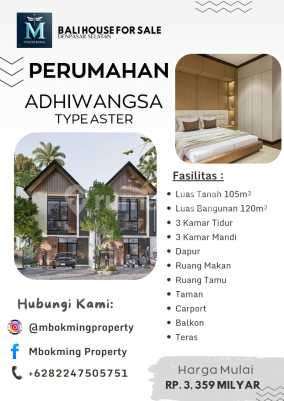 Mau punya rumah baru dengan harga terjangkau? Rumah 2 lantai di kawasan Denpasar Selatan siap jadi milik Anda! ADHIWANGSA BALI Harmony Retreat & Lifestyle Living has coming to Bali 4 minutes to Mall Bali Galeria 10 minutes to Kuta & Seminyak area 10 minutes to Sanur area 15 minutes to Airport Int. Ngurahrai 20 minutes to Jimbaran area 20 minutes to Renon area 30 minutes to Canggu area 45 minutes to Ubud area