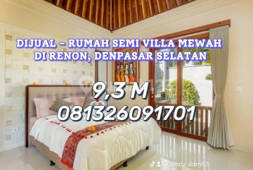 DIJUAL - RUMAH SEMI VILLA MEWAH DI RENON, DENPASAR SELATAN Lokasi premium di kawasan Tukad Badung, Renon - lingkungan elite, tenang, dan strategis di pusat kota. Spesifikasi: Luas Tanah: 520 m² Luas Bangunan: 233 m² Tahun Bangunan: 2017 4 Kamar Tidur 4 Kamar Mandi Ruang Tamu luas & nyaman Dapur lengkap Full Furnished (siap huni) Hadap Timur Fasilitas: Kolam Renang pribadi (5 x 10 meter) Garasi muat 2 mobil Air PDAM & sumur bor Listrik 7.700 watt Akses jalan lebar 8 meter Legalitas: SHM IMB dalam proses (biaya ditanggung owner) Harga: 9,3 Miliar (NEGO) Hunian semi villa ini cocok untuk tempat tinggal mewah maupun investasi di kawasan favorit Denpasar. Listing ID: saidbudyasa270326 Info & Survey: 0813xxxxxxxx