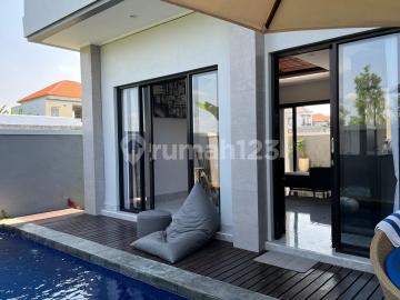 Rumah furnish bergaya villa di Denpasar Timur Lt 130m2 Lb 150m2 3 km.tidur , 3 km.mandi hadap Timur air sumur bor akses 4 mtr