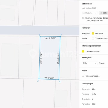 Dijual Tanah Jln. Sekar Tunjung - Denpasar. Berada dalam kawasan elit dan tenang, juga dekat dengan Jln. Gatot subroto timur * Luas tanah : 400 m² / 4 Are * Lebar depan : 14 Mtr * Sertipikat Hak Milik * Kontur tanah datar siap bangun * Hadap utara * ITR Zona perumahan * Akses jalan : 6 Mter Harga : Rp 975Jt / Are / 100 m²