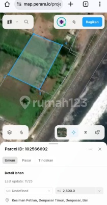 Jual Tanah Beach Front Pantai Padang Galak view Nusa Penida & Mountain Agung Lokasi : Pantai Padang Galak - Kesiman Denpasar LuasTanah : 3.050 M² 2.600 M² 1.450 M² Total 71.000 M² Dijual hanya 35 are saja Spot menarik dari lokasi tanah : - Pantai Padang Galak - Dekat Pelabuhan Matahari Terbit Sanur - Green Point Villa & Resort Kawasan Villa - Hidden Beach - Akses jalan 6 meter - ITR Zona Akomodasi Wisata - SHM Harga : Rp 1.5 Milyard /are Nego More info : HB