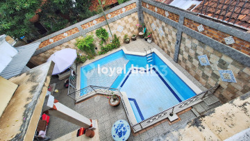 Come see this beautiful house, has marble floors, a very comfortable living room combination, and a private terrace with storage. Located in the center of Denpasar city with a comfortable and calm atmosphere for the family Having a spacious room gives you more space and you feel at home gathering with your family. Near Sanur and Renon. Make this home your own! Land size : 414 sqm Building size : 350 sqm Title : Freehold (SHM) Build year : 2005 House face : South Bedroom : 5 + 1 Bathroom : 6 + 1 Features: Aircond Carport for 4 cars Bathtub Balcony Maid room Water heater Swimming pool Kitchen Water tank Drilling water PDAM water Fully furnished 6.600 watt of electricity Detail: Paving access Sale Price: IDR560000xxxxTANPA PERANTARA / NO BROKER)