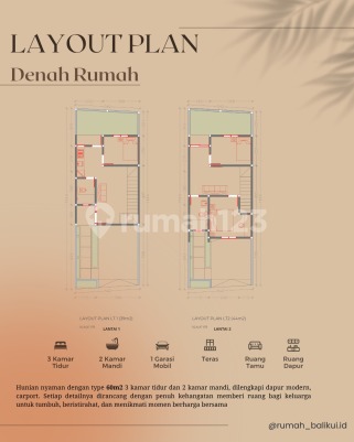 Rekomendasi properti dengan penawaran terbaikRumah123 adalah situs teknologi jual beli dan sewa properti terdepan di Indonesia, yang hadir sejak tahun 2007 dan telah melayani jutaan orang di Indonesia. Rumah123 senantiasa berkomitmen untuk membuat pengalaman 'Jual Beli dan Sewa Properti Lebih Mudah' dengan dukungan dari developer terkemuka serta agen profesional.