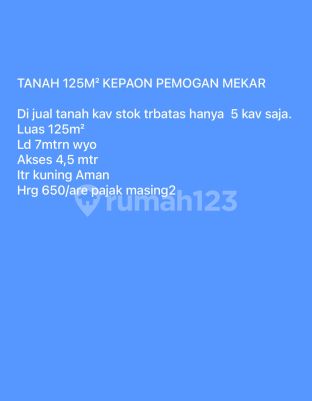 Tanah 125 m2 Kepaon Pemogan mekar Di jual tanah Akses 4 meter Itr kuning Harga 650 jt per Are For sale