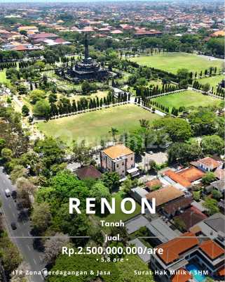 Tanah Renon 2 menit Jalan Kaki Ke Lapangan Renon Zona Perdagangan dan Jasa Lokasi di Jalan Raya Puputan, Renon - Denpasar 20 meter / 2 menit jalan kaki ke Lapangan Bajra Sandhi Renon Details : - Luas 580 m2 / 5,8 are - Dimensi 24m x 23m - Tanah Hook / Pojok dapat 2 akses jalan - Hadap Selatan dan Barat - Akses jalan 7 meter aspal - Surat Hak Milik / SHM - ITR Zona Perdagangan dan Jasa Harga Rp.25.000.000/m2 atau Rp.2.500.000.xxx/are pwn tns